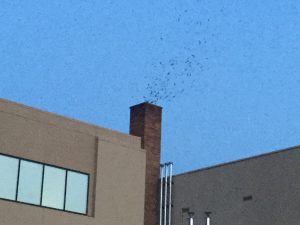 At dusk the birds began to form columns that then descended into the chimney. Sorry about the blurry photo, my iPad is great but this was a challenge it could not meet.
