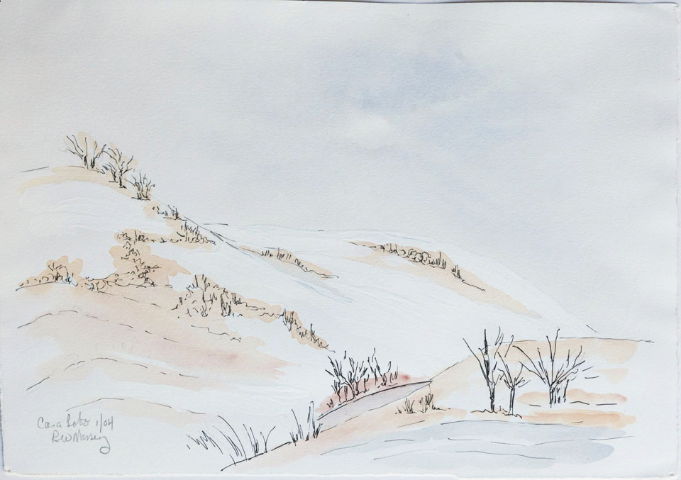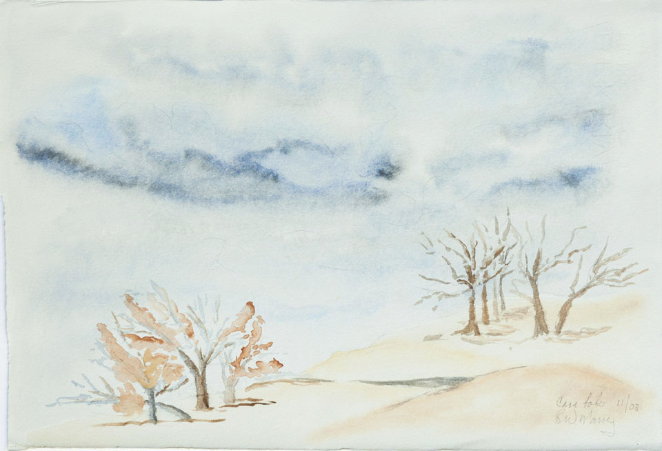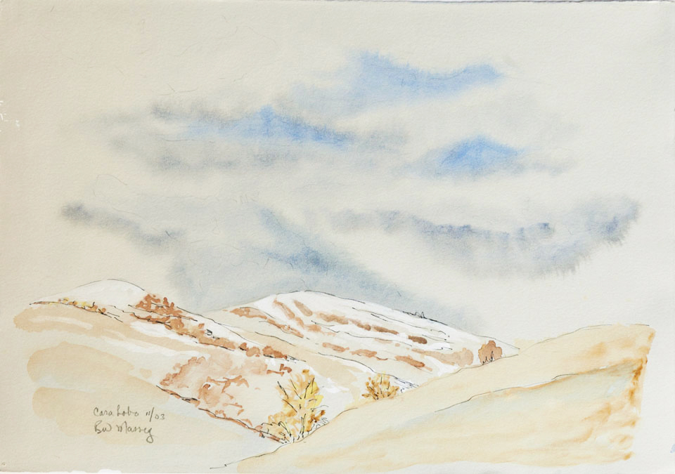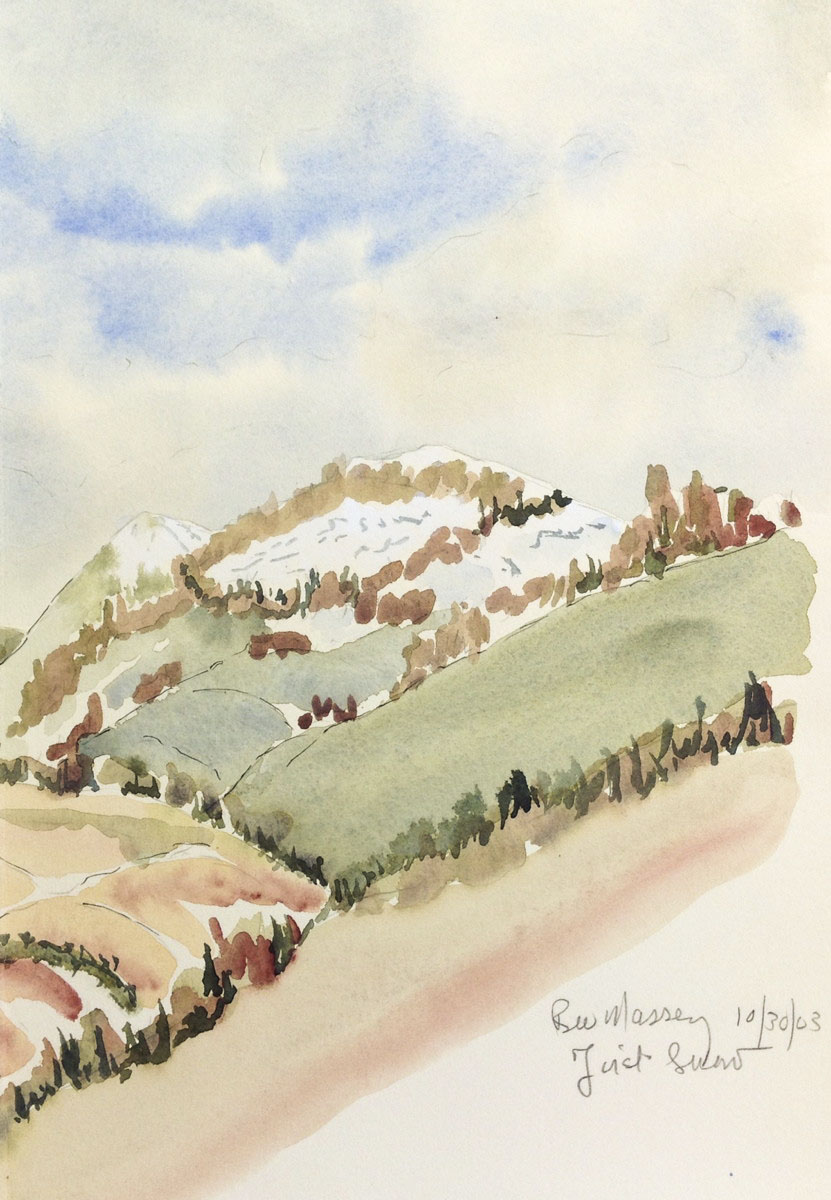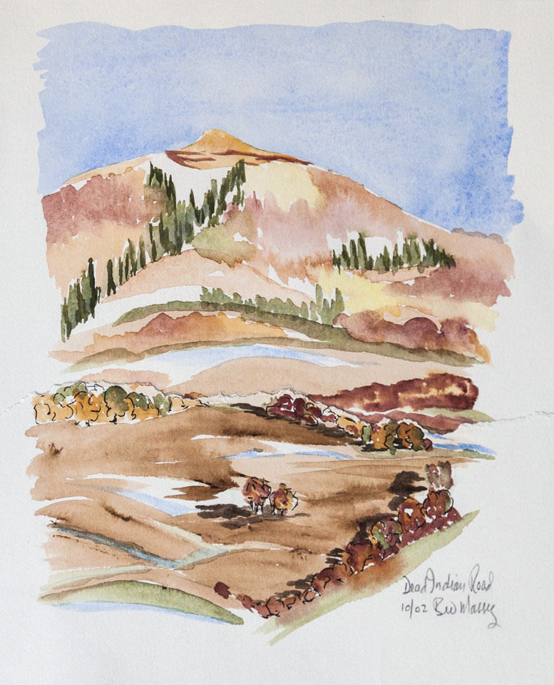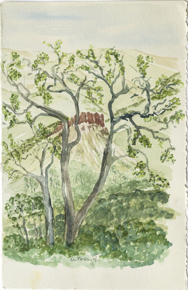 When we moved to Ashland 14 years ago I was transported to a whole new landscape with 4 seasons and green everywhere. Plein air was challenging in winter cold and summer heat but the terrain was irresistible. Many were done at Pat Holton’s studio a few miles out of Ashland in the foothills of the Cascades. Pat is a good friend and a printmaker who is also a fine encaustic creator and watercolorist, and I have a creation in each of these media on my walls